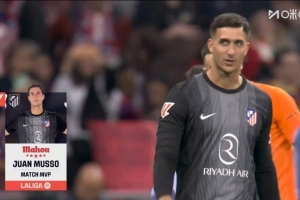 6次扑救全场最多!穆索当选马竞1-2巴萨一役全场最佳